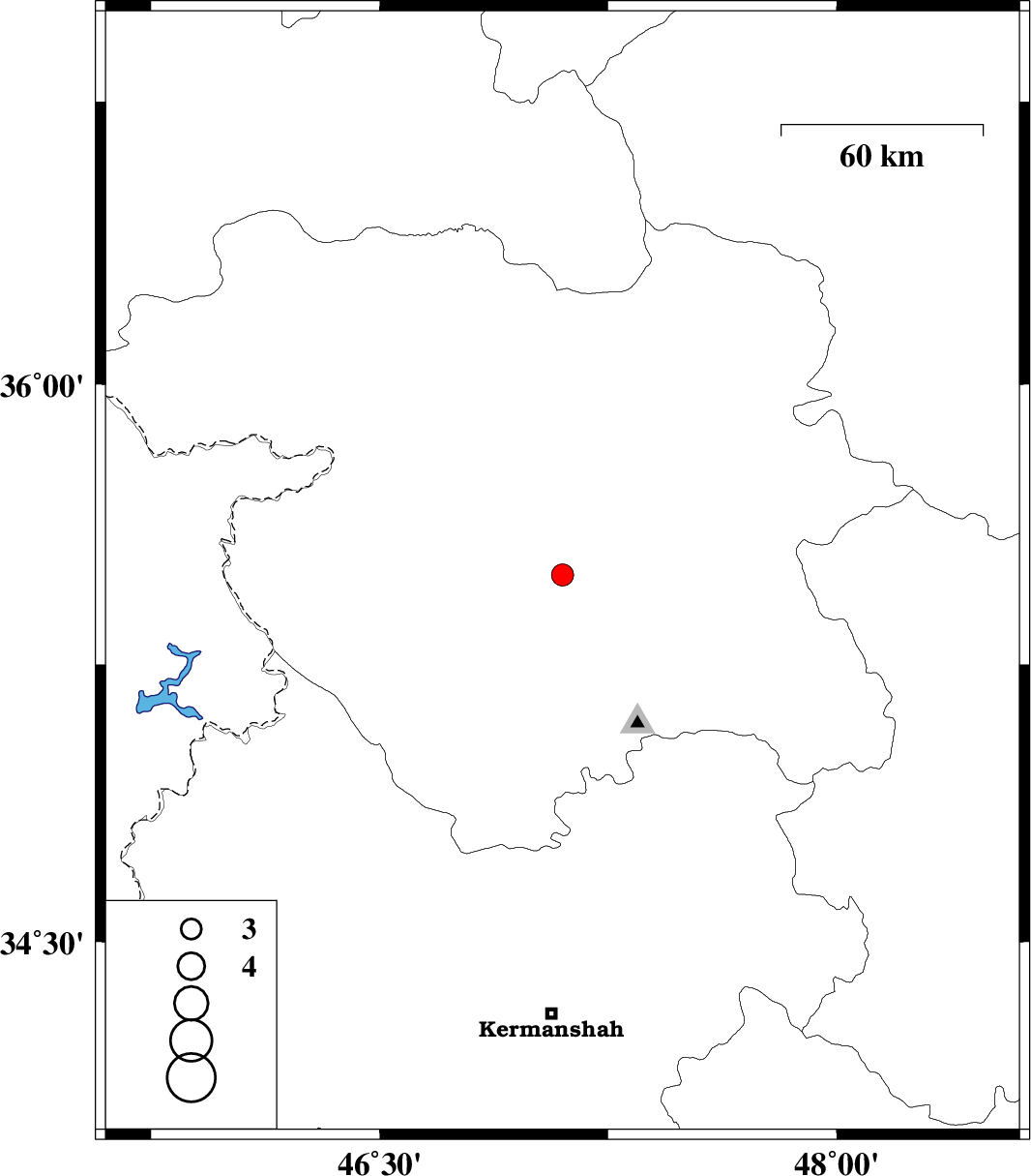| 2009/09/26 | 09:56:56.1 | 13:26:56.1 | 34.54 | 46.03 | 14 | ML:3.4 | Kermanshah Province, 16 km East of Sar-e pol-e zahab |