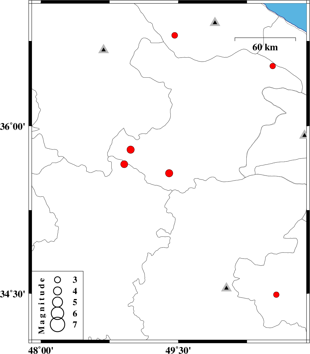 | 2010/03/04 | 16:38:49.4 | 20:08:49.4 | 35.79 | 48.98 | 33 | ML:3.7 | Ghazvin Province, 46 km North of Razan |