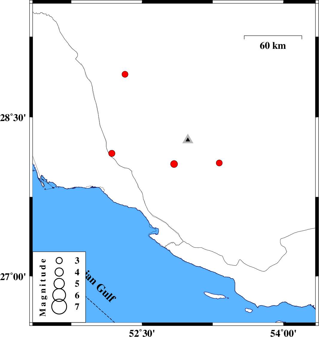 | 2010/03/24 | 01:47:54.8 | 06:17:54.8 | 28.9 | 52.32 | 14 | ML:3 | Fars Province, 22 km East of Farashband |
