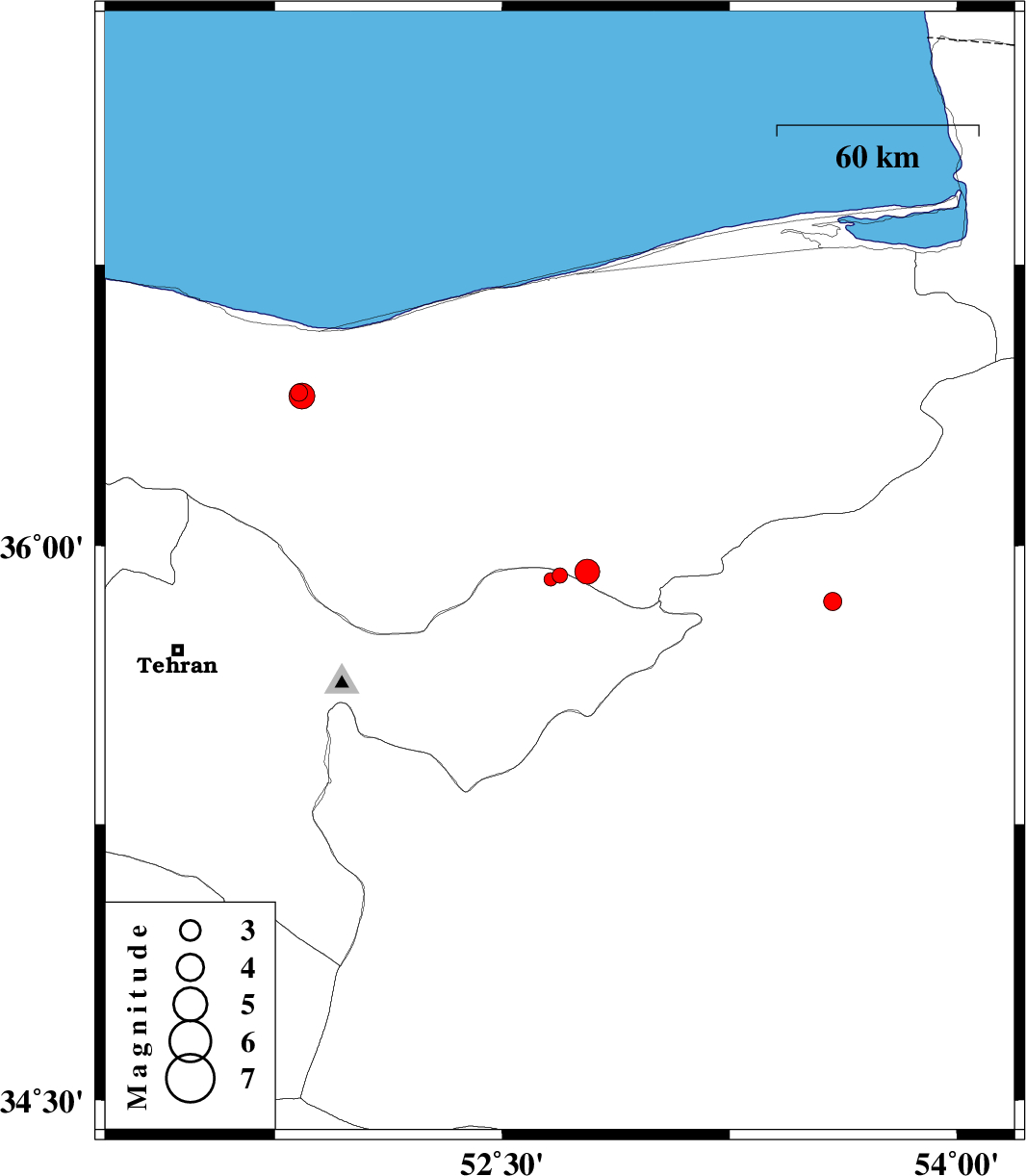 | 2010/03/09 | 03:22:14.6 | 06:52:14.6 | 36.4 | 51.84 | 6 | ML:3.8 | Mazandaran Province, 26 km South-West of Nur |