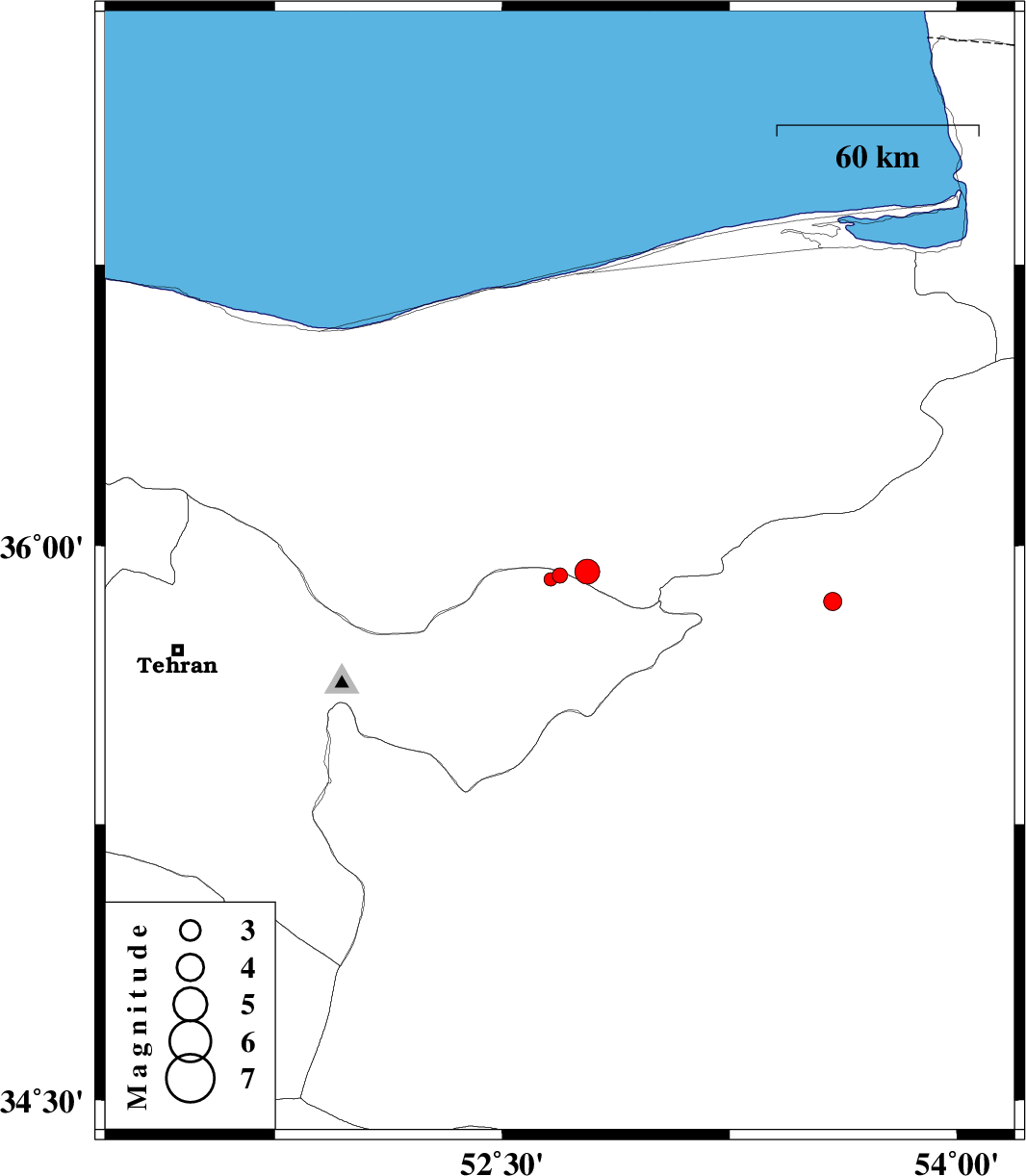 | 2010/03/29 | 23:27:15.9 | 03:57:15.9 | 35.91 | 52.66 | 27 | ML:2 | Tehran Province, 20 km North-West of Firuzkuh | ||