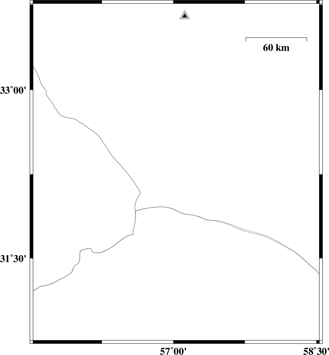 | 2009/09/30 | 00:12:01.1 | 03:42:01.1 | 32.04 | 55.9 | 15 | ML:3.3 | Yazd Province, 68 km North-East of Bafq | ||