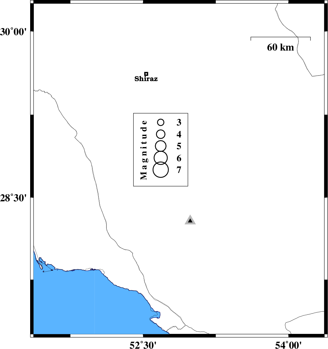 | 2009/10/06 | 03:25:19.3 | 06:55:19.3 | 28.75 | 52.87 | 18 | ML:3.1 | Fars Province, 28 km East of Firuz Abad |