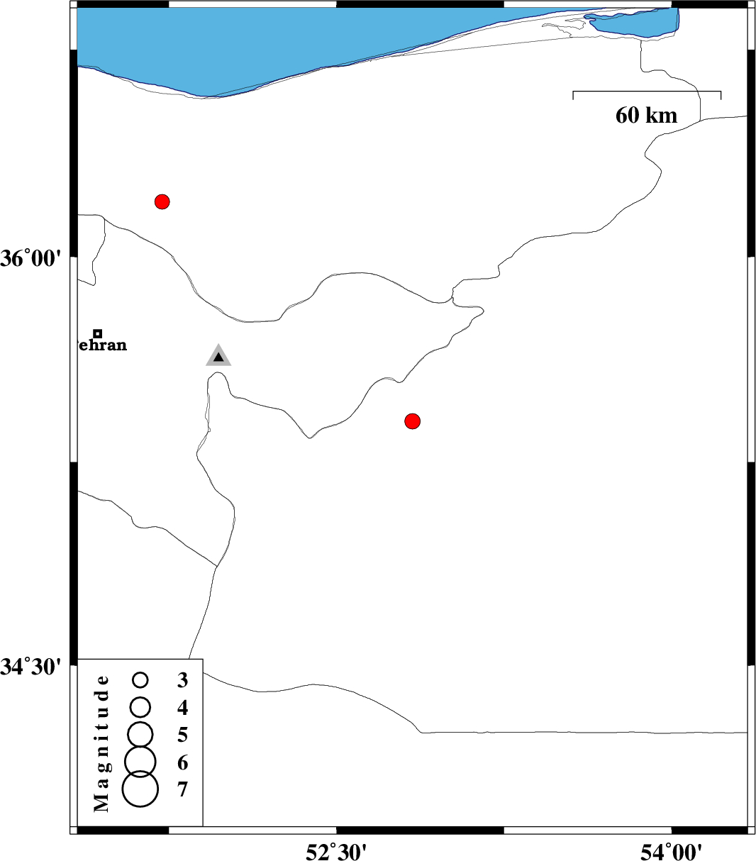 | 2009/10/08 | 03:59:00.4 | 07:29:00.4 | 36.2 | 51.72 | 21 | ML:3 | Mazandaran Province, 50 km North-East of Tajrish |