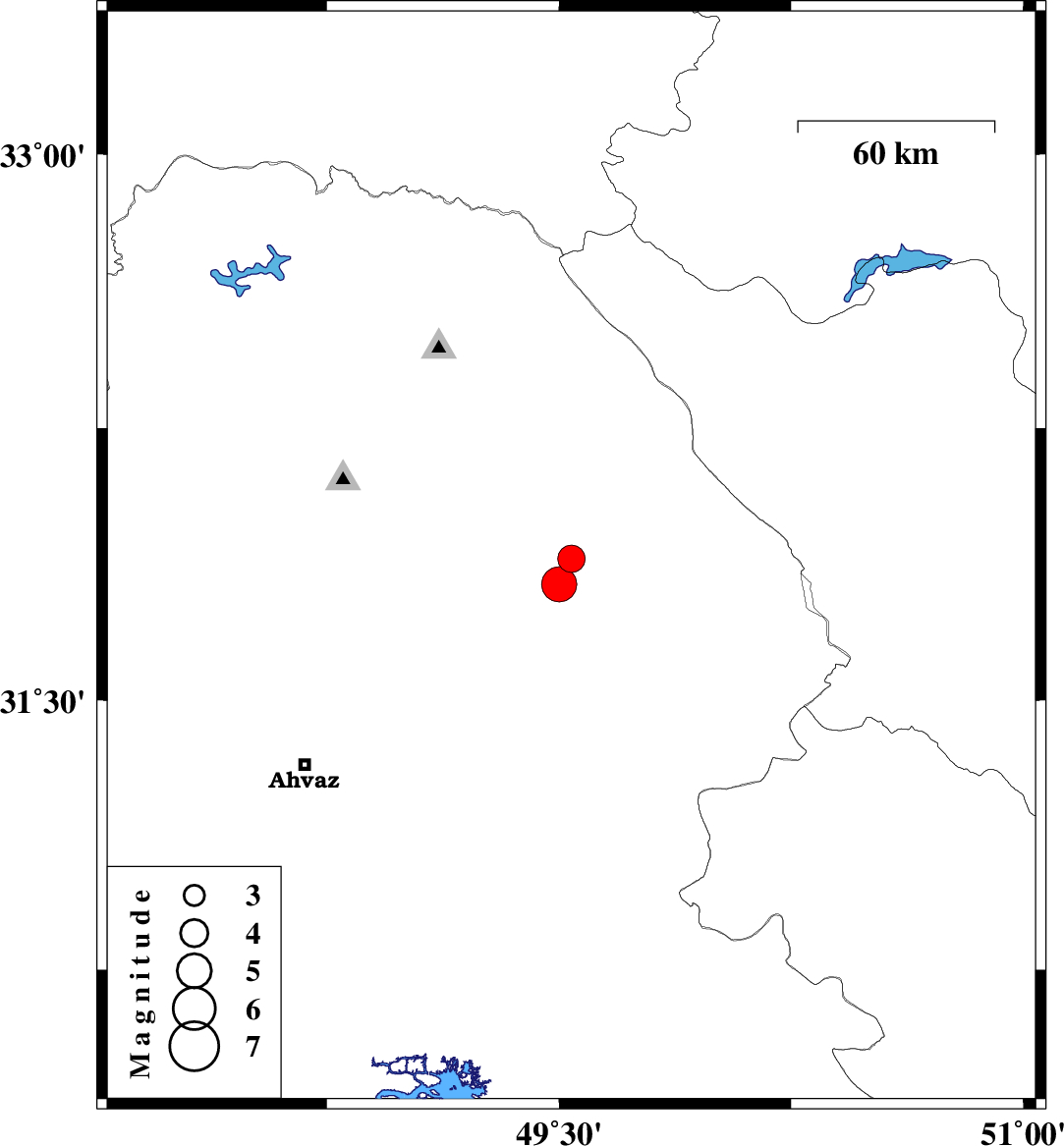 | 2009/10/04 | 21:50:49.6 | 01:20:49.6 | 31.82 | 49.5 | 15 | ML:5.1 | Khoozestan Province, 22 km South-East of Masjed Soleyman |