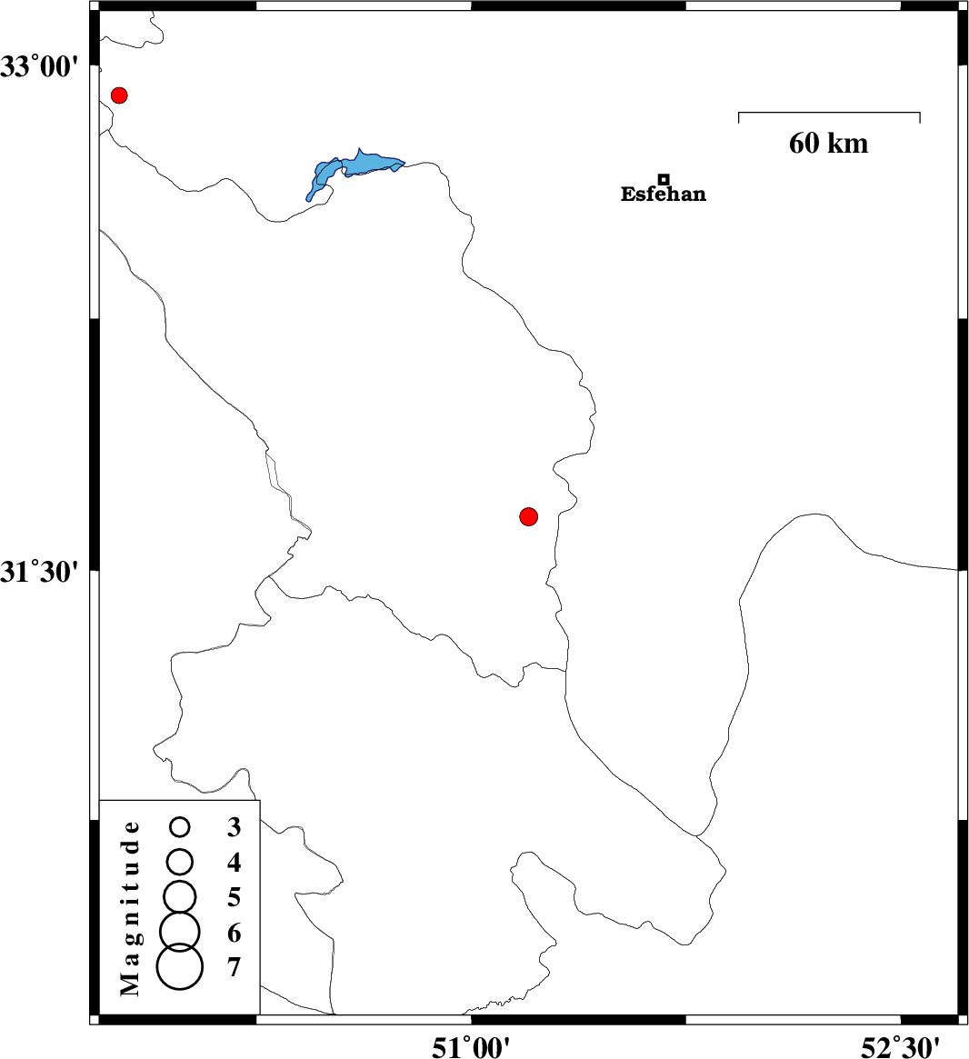 | 2009/09/18 | 23:47:59.1 | 04:17:59.1 | 32.91 | 49.77 | 18 | ML:2.5 | Esfahan Province, 32 km West of Fereydunshahr |