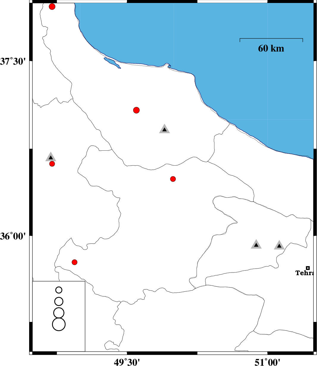 | 2009/10/17 | 18:16:44.9 | 21:46:44.9 | 36.49 | 49.99 | 15 | ML:2.5 | Ghazvin Province, 25 km North of Qazvin | ||