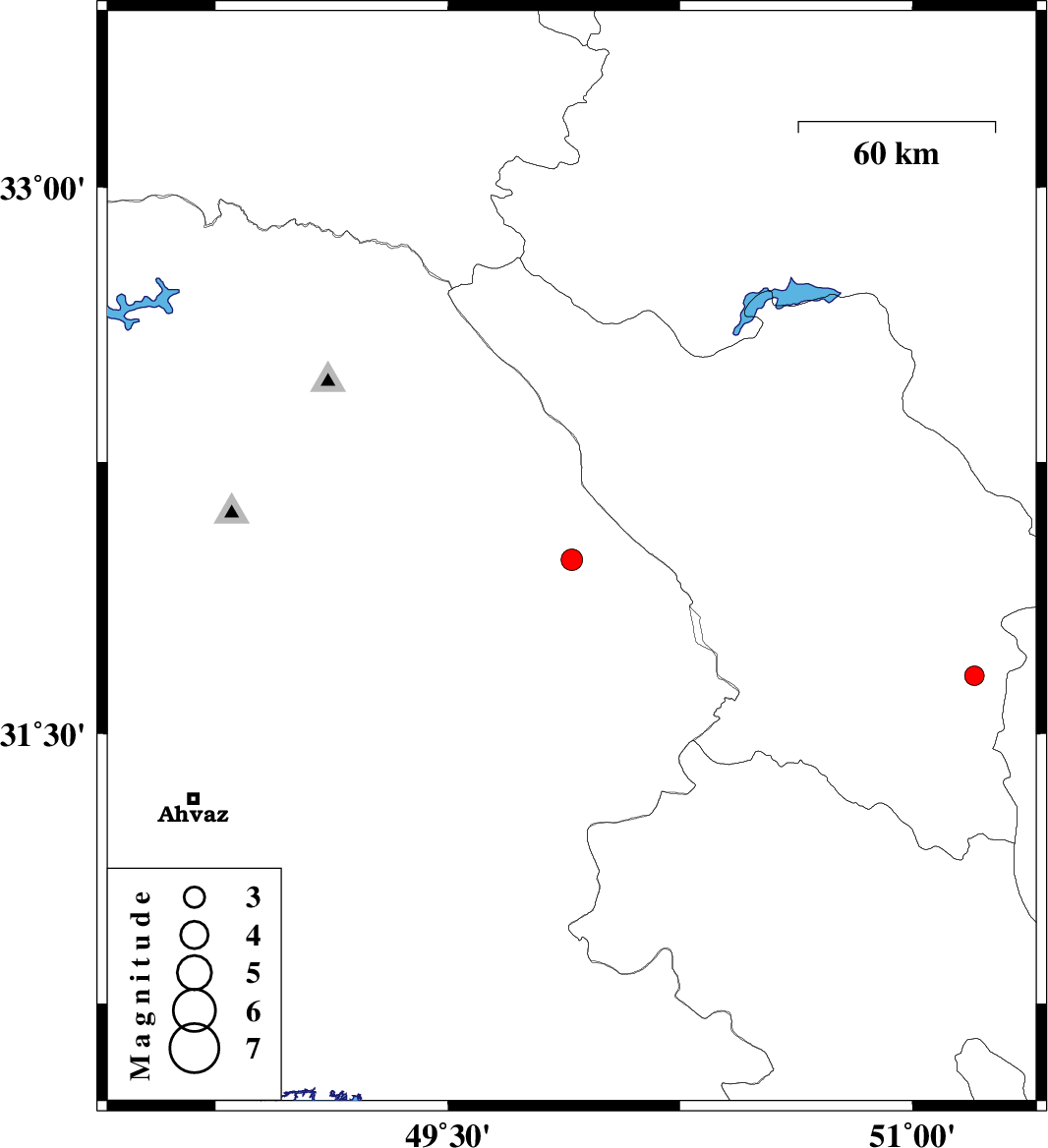 | 2009/10/18 | 11:12:29.7 | 14:42:29.7 | 31.98 | 49.9 | 14 | ML:3.1 | Khoozestan Province, 16 km North of Izeh | ||