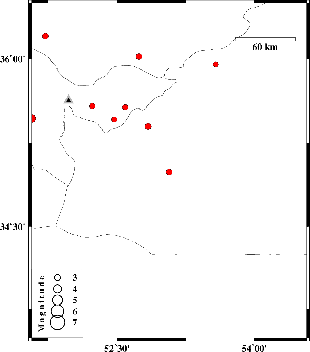 | 2009/10/22 | 04:07:14.7 | 07:37:14.7 | 34.99 | 53.07 | 16 | ML:2.9 | Semnan Province, 70 km South-West of Semnan | ||