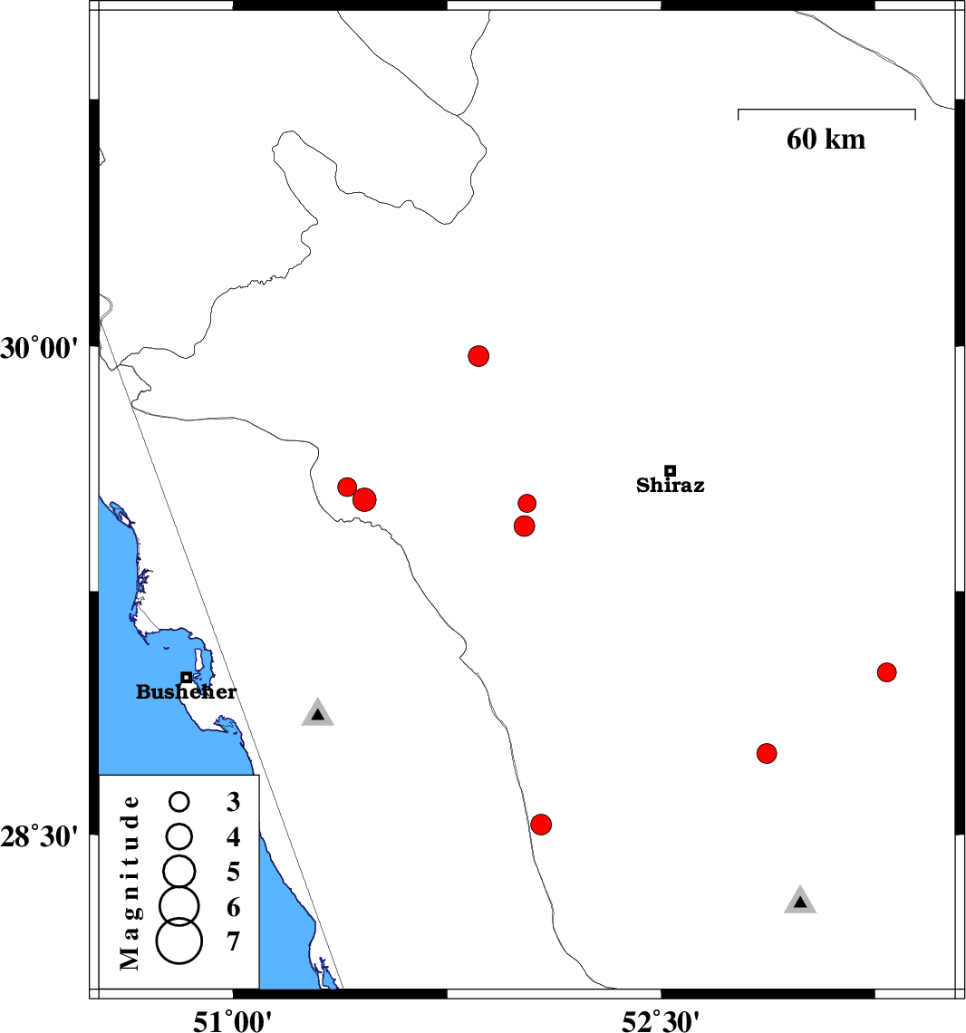 | 2009/09/22 | 06:33:42.9 | 10:03:42.9 | 29.45 | 52.02 | 15 | ML:3.2 | Fars Province, 40 km South-East of Kazerun |