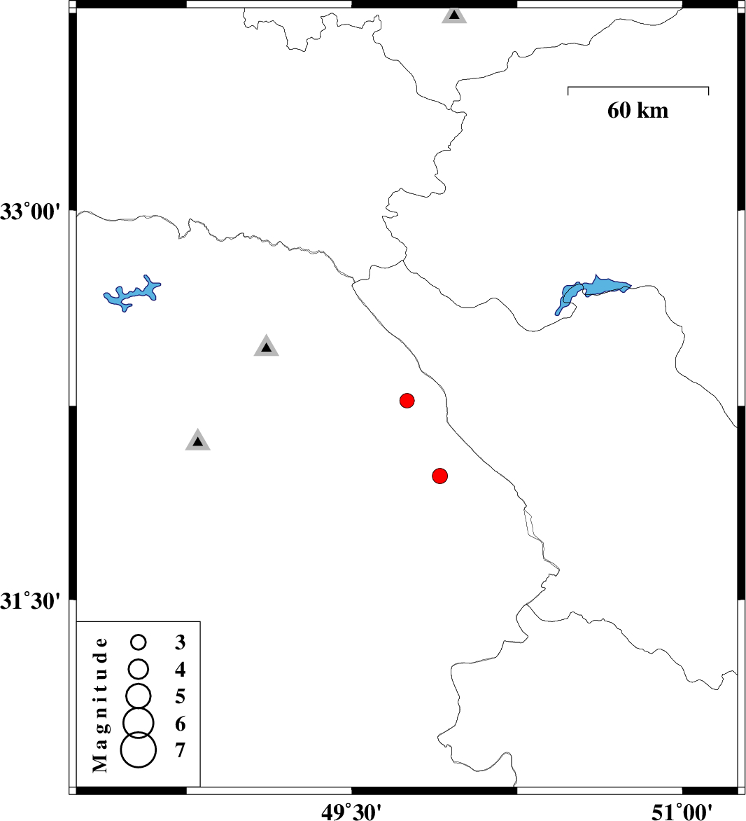 | 2009/10/18 | 11:12:29.7 | 14:42:29.7 | 31.98 | 49.9 | 14 | ML:3.1 | Khoozestan Province, 16 km North of Izeh |