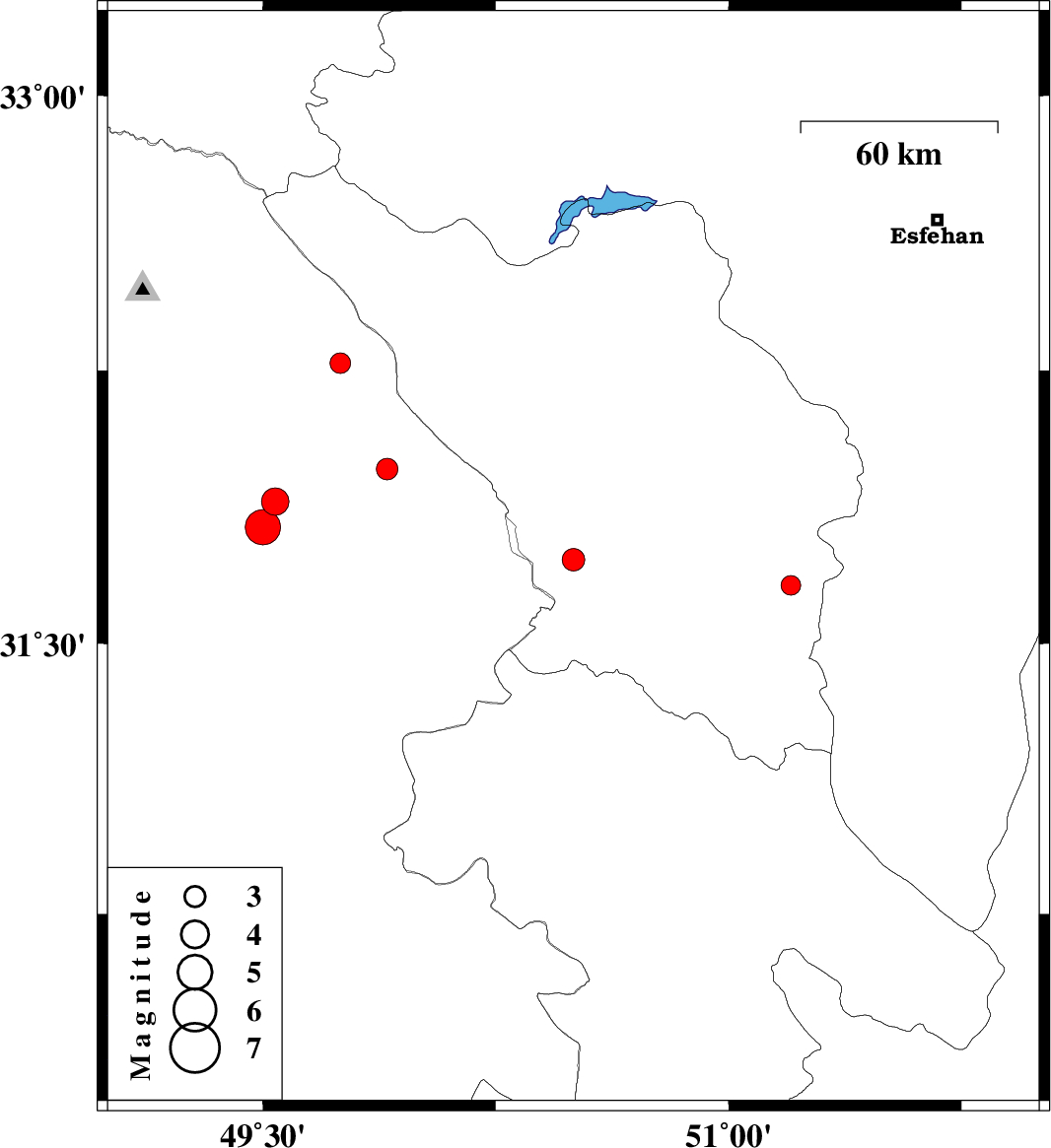 | 2009/10/12 | 21:00:22.0 | 00:30:22.0 | 31.66 | 51.2 | 14 | ML:2.8 | Chaharmahal Bakhtiari Province, 35 km South of Borujen | ||