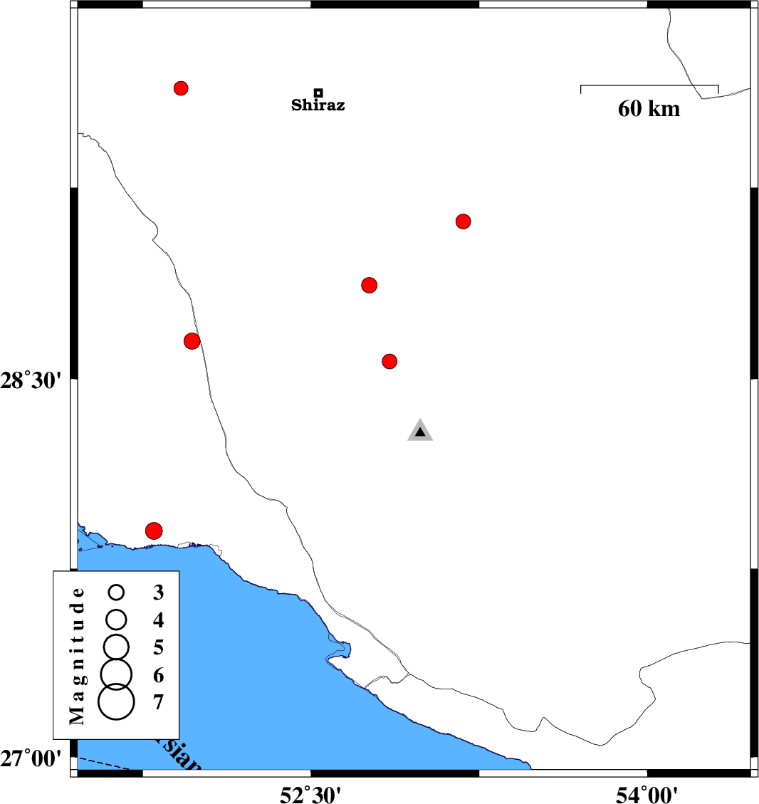 | 2009/11/02 | 19:52:44.8 | 23:22:44.8 | 28.45 | 52.96 | 14 | ML:3 | Fars Province, 7 km Qir va Karzin | ||