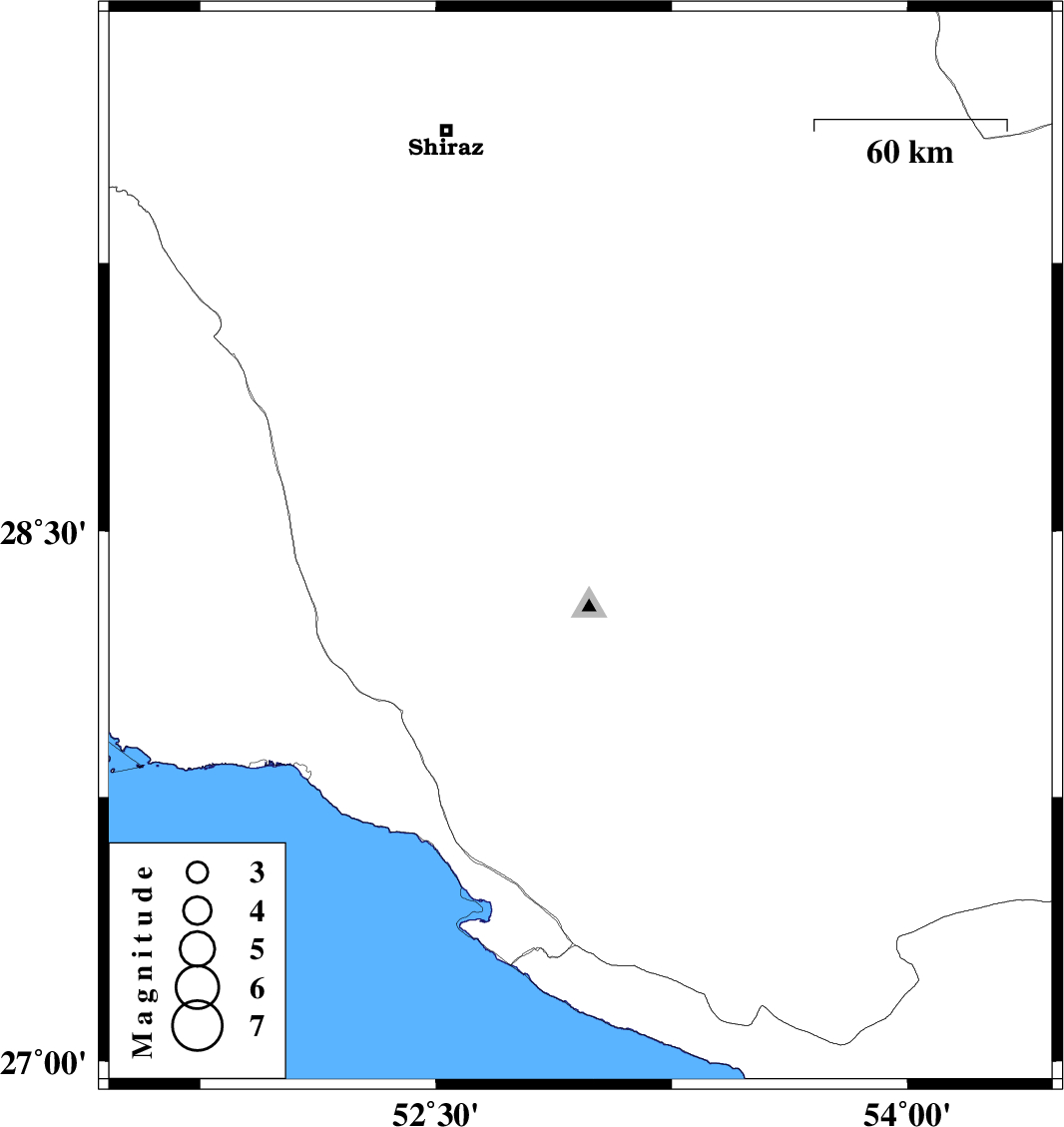 | 2009/11/02 | 19:52:44.8 | 23:22:44.8 | 28.45 | 52.96 | 14 | ML:3 | Fars Province, 7 km Qir va Karzin |