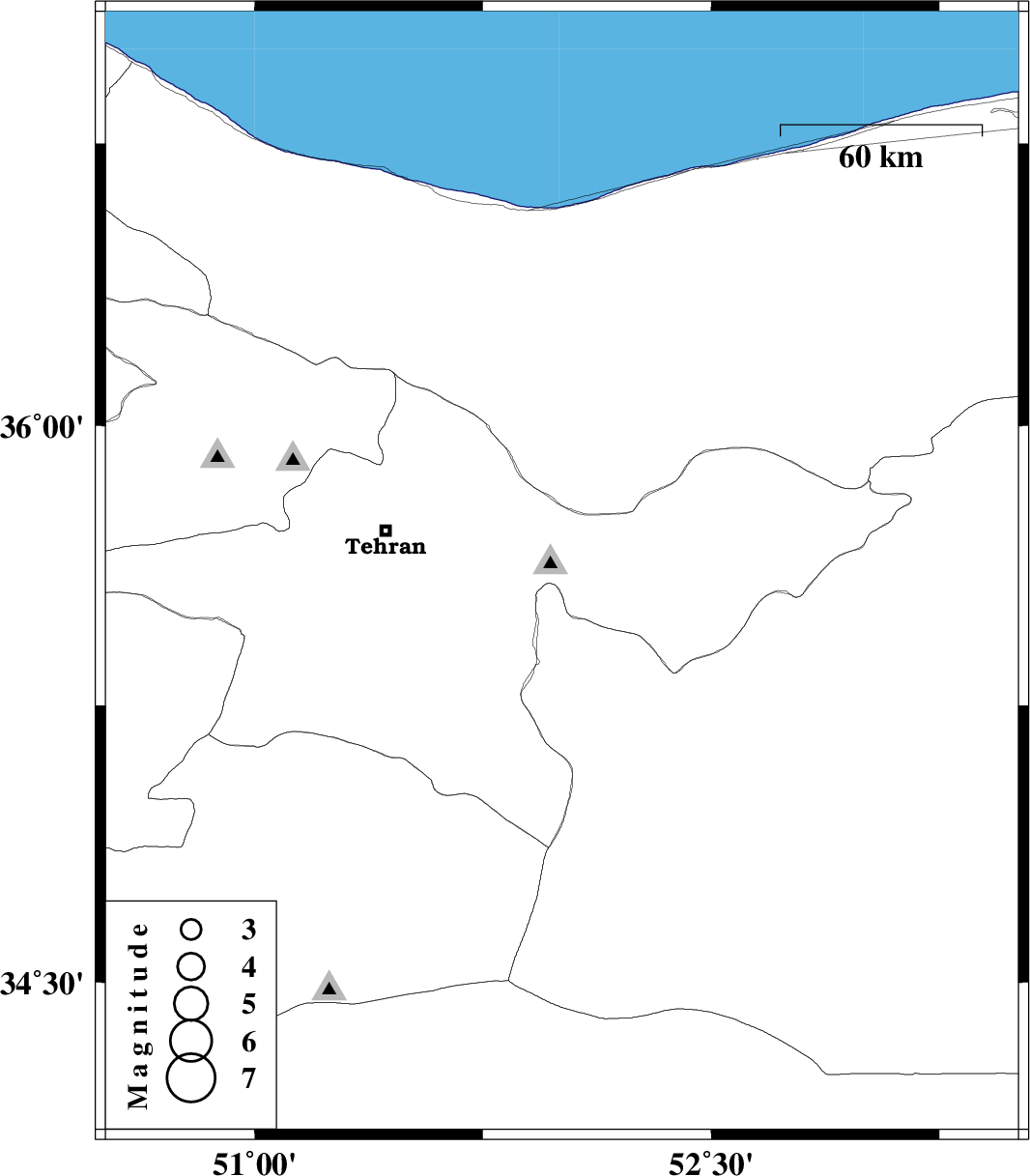 | 2009/11/10 | 06:41:05.4 | 10:11:05.4 | 35.6 | 52.01 | 10 | ML:2.5 | Tehran Province, 14 km South of Damavand |