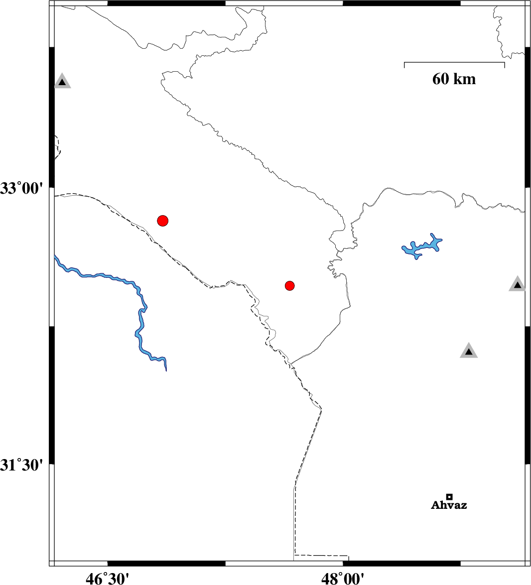 | 2009/11/17 | 12:48:40.1 | 16:18:40.1 | 32.47 | 47.66 | 42 | ML:2.7 | Ilam Province, 45 km South-East of Dehloran | ||