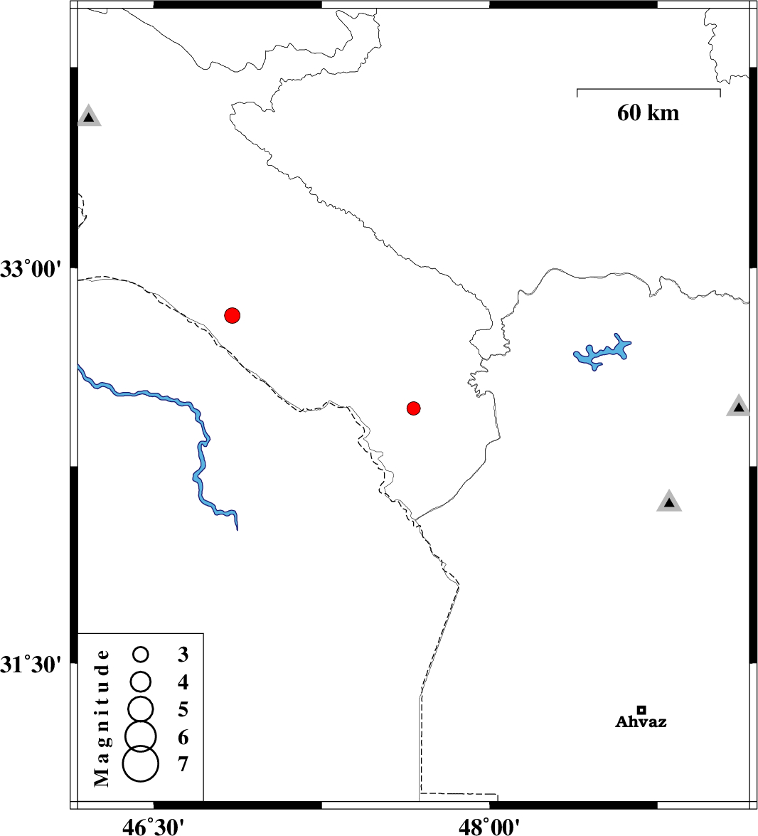| 2009/11/01 | 02:53:53.9 | 06:23:53.9 | 32.82 | 46.85 | 18 | ML:3.1 | Ilam Province, 41 km North-West of Dehloran |