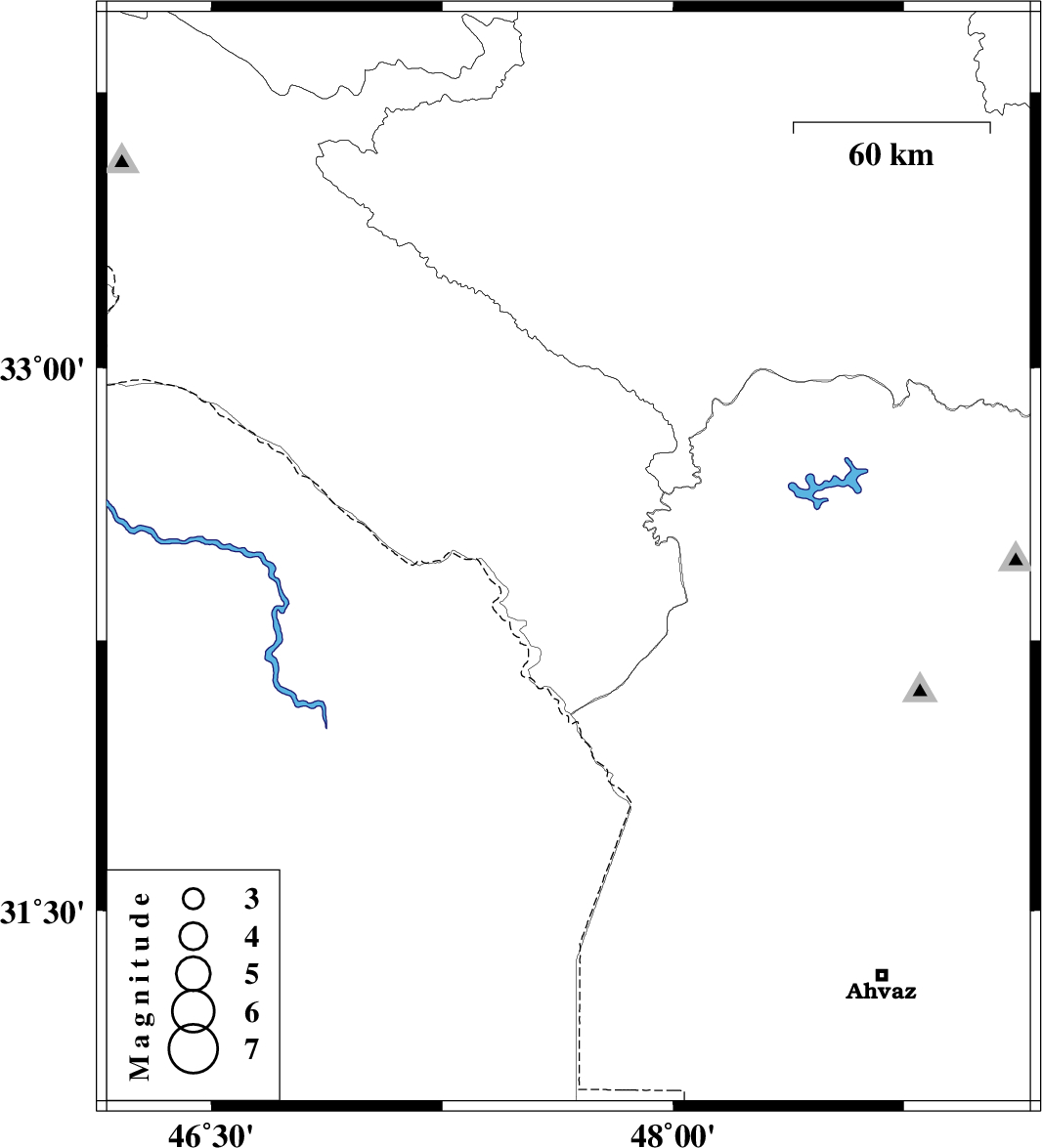 | 2009/11/17 | 12:48:40.1 | 16:18:40.1 | 32.47 | 47.66 | 42 | ML:2.7 | Ilam Province, 45 km South-East of Dehloran |