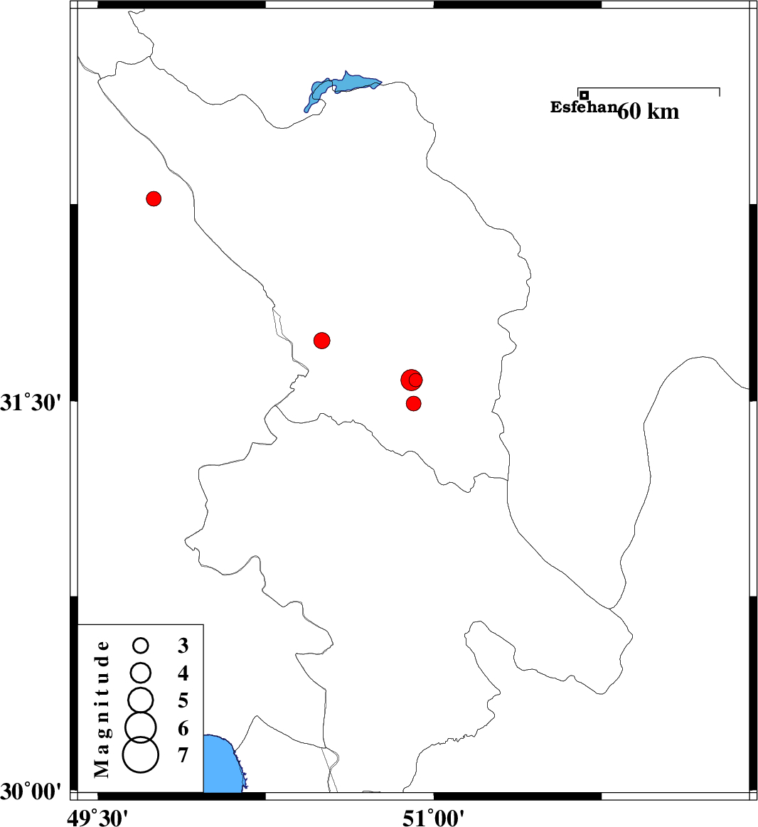 | 2009/11/18 | 00:50:32.8 | 04:20:32.8 | 31.58 | 50.9 | 14 | ML:4.2 | Chaharmahal Bakhtiari Province, 12 km Lordegan | ||