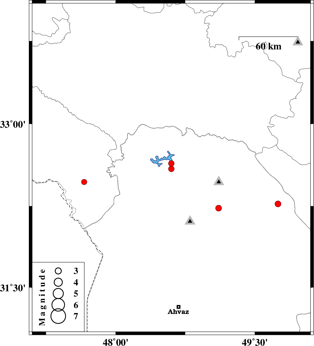 | 2009/11/17 | 12:48:40.1 | 16:18:40.1 | 32.47 | 47.66 | 42 | ML:2.7 | Ilam Province, 45 km South-East of Dehloran | ||