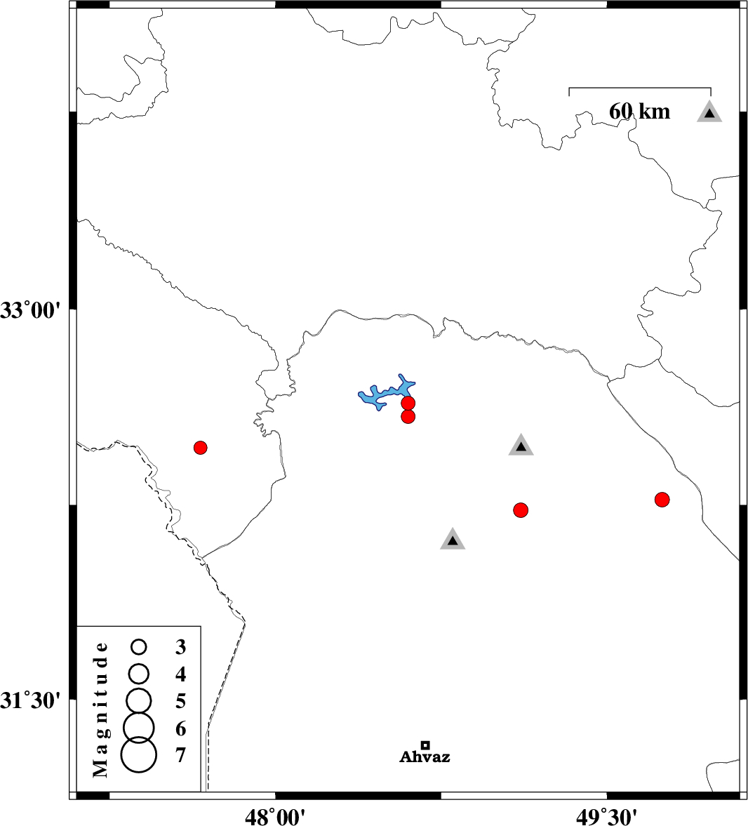 | 2009/11/17 | 12:48:40.1 | 16:18:40.1 | 32.47 | 47.66 | 42 | ML:2.7 | Ilam Province, 45 km South-East of Dehloran | ||