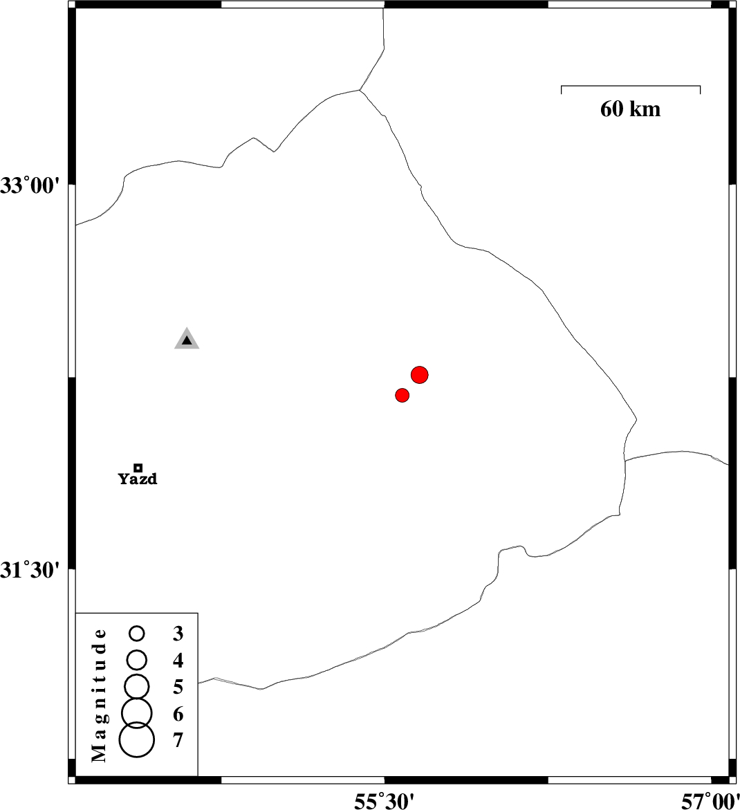 | 2009/11/27 | 06:40:14.1 | 10:10:14.1 | 32.26 | 55.66 | 14 | ML:3.5 | Yazd Province, 78 km North-East of Bafq |