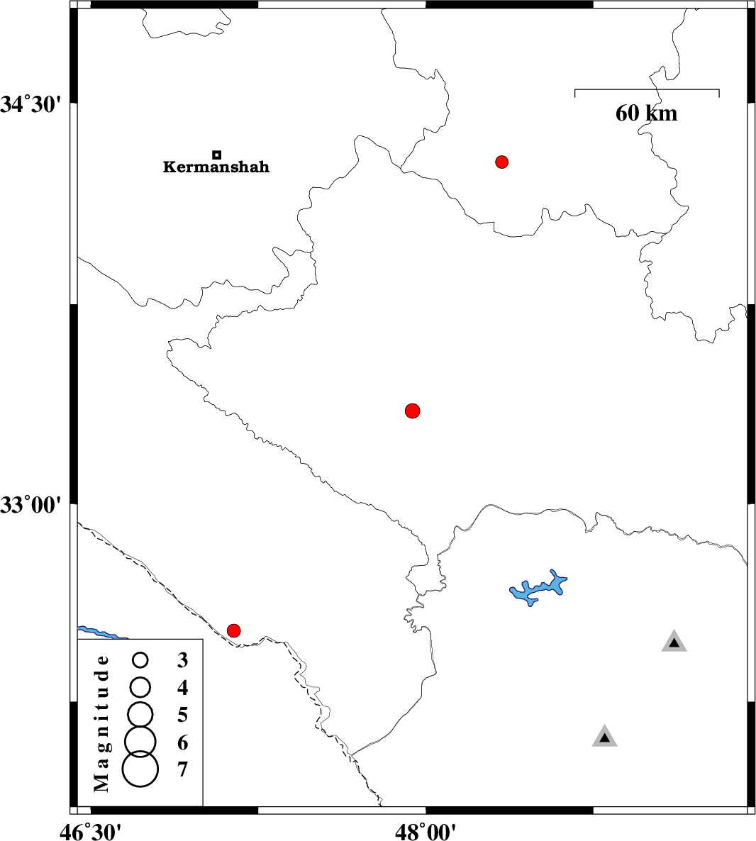 | 2009/12/04 | 06:02:18.8 | 09:32:18.8 | 33.35 | 47.94 | 32 | ML:3 | Lorestan Province, 30 km North-East of Pol-e dokhtar | ||