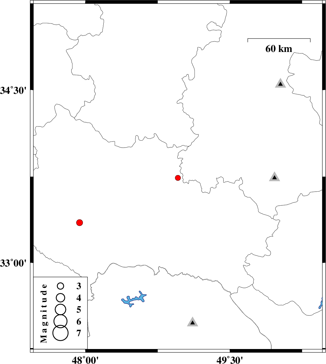 | 2009/12/04 | 06:02:18.8 | 09:32:18.8 | 33.35 | 47.94 | 32 | ML:3 | Lorestan Province, 30 km North-East of Pol-e dokhtar |