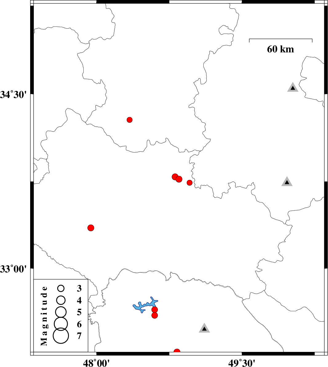 | 2009/12/04 | 06:02:18.8 | 09:32:18.8 | 33.35 | 47.94 | 32 | ML:3 | Lorestan Province, 30 km North-East of Pol-e dokhtar | ||