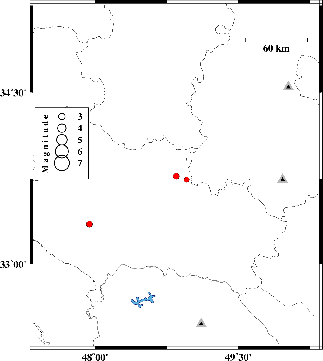 | 2009/12/04 | 06:02:18.8 | 09:32:18.8 | 33.35 | 47.94 | 32 | ML:3 | Lorestan Province, 30 km North-East of Pol-e dokhtar |