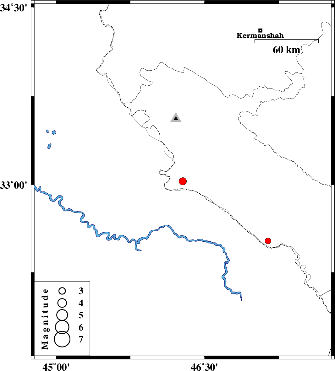 | 2009/12/04 | 03:26:18.6 | 06:56:18.6 | 32.52 | 47.14 | 15 | ML:2.7 | Ilam Province, 22 km South-West of Dehloran |