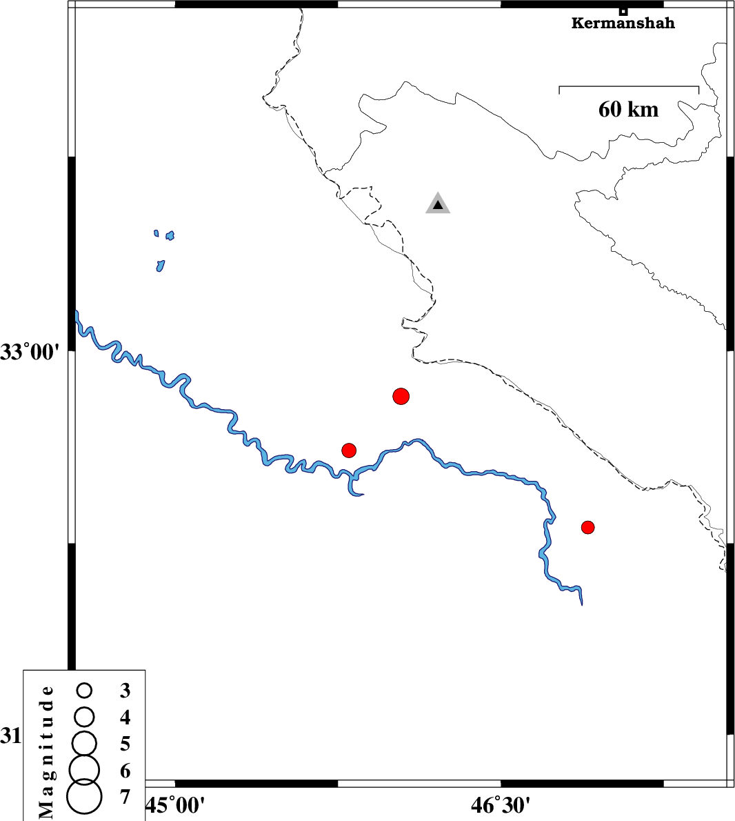 | 2009/12/04 | 03:26:18.6 | 06:56:18.6 | 32.52 | 47.14 | 15 | ML:2.7 | Ilam Province, 22 km South-West of Dehloran |