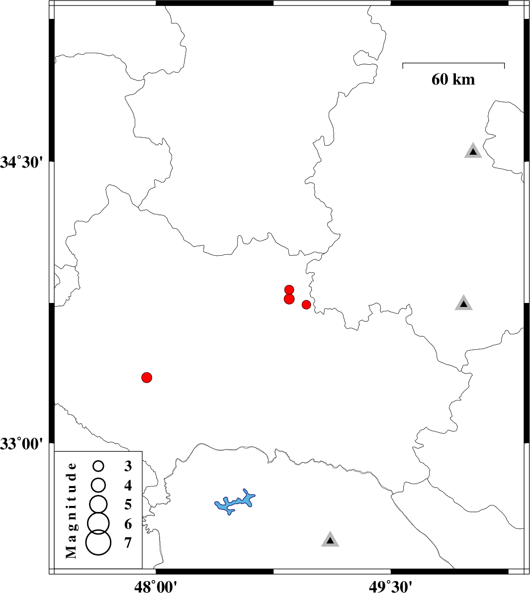 | 2009/12/04 | 06:02:18.8 | 09:32:18.8 | 33.35 | 47.94 | 32 | ML:3 | Lorestan Province, 30 km North-East of Pol-e dokhtar |