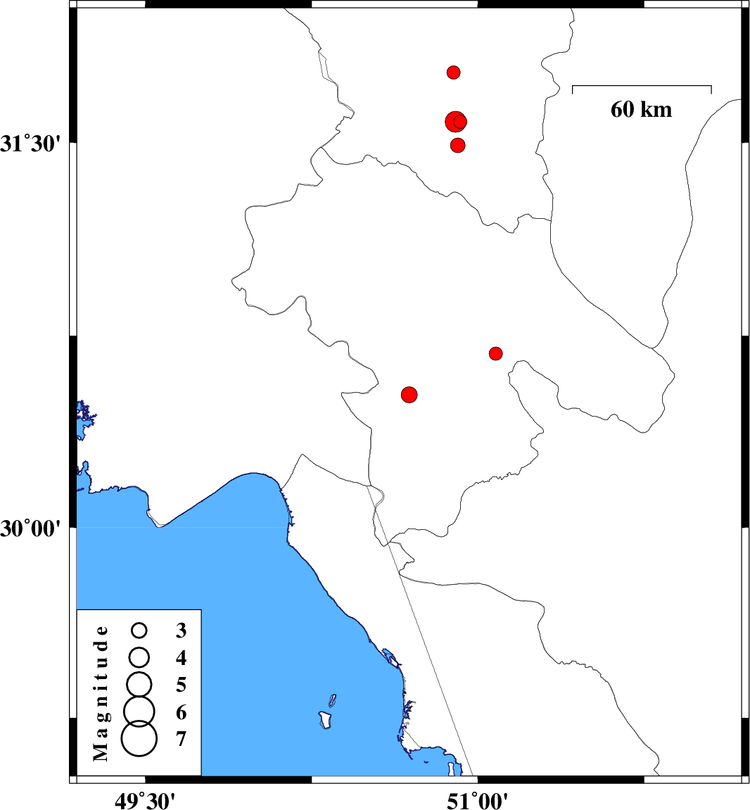 | 2009/11/21 | 05:47:14.0 | 09:17:14.0 | 30.68 | 51.08 | 15 | ML:2.7 | Kohkiluieh va boyerahmad Province, 47 km West of Yasuj | ||