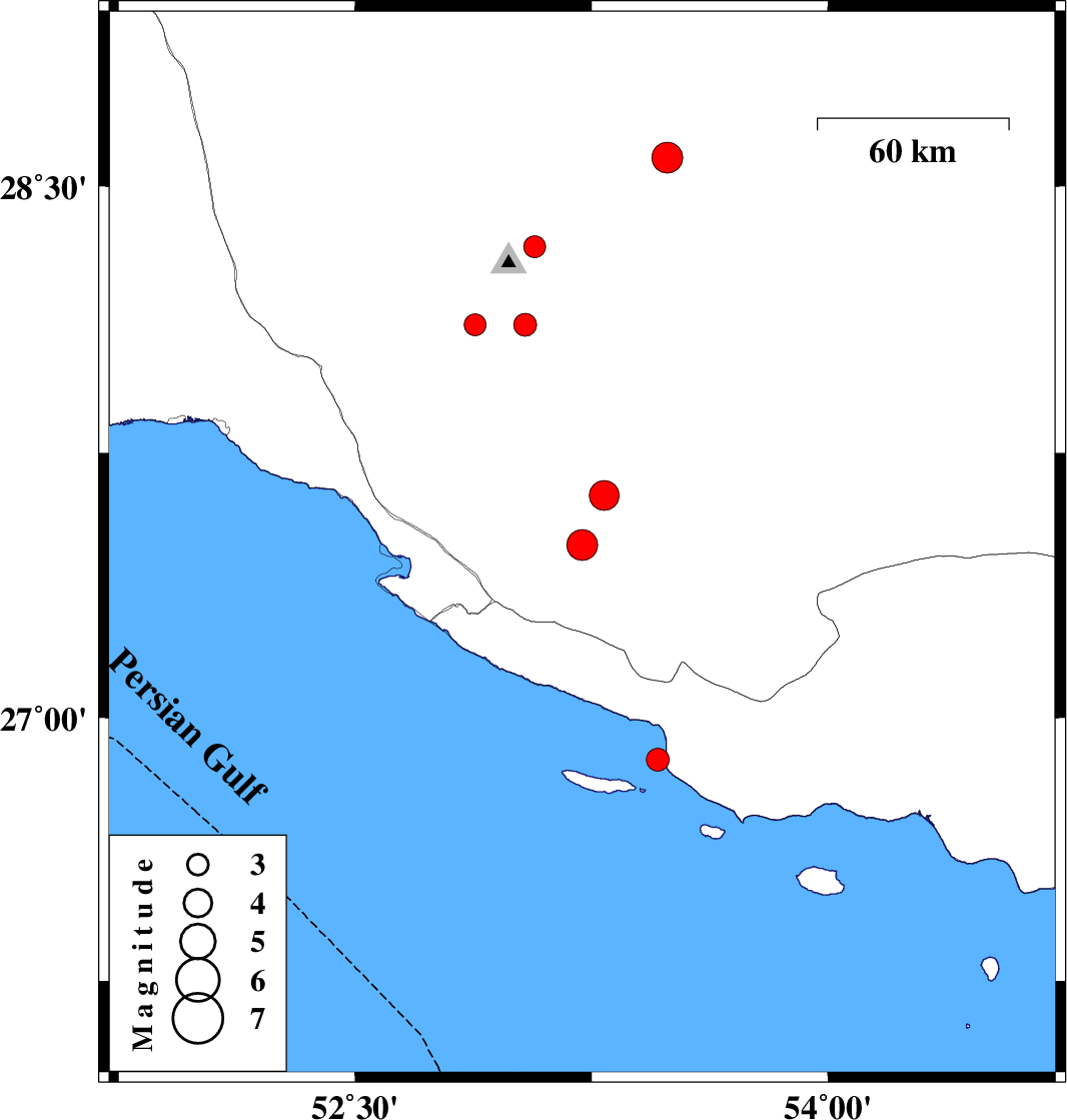 | 2009/11/18 | 06:35:58.4 | 10:05:58.4 | 26.88 | 53.46 | 36 | ML:3.2 | Persian Gulf, 58 km South-East of Lamerd | ||