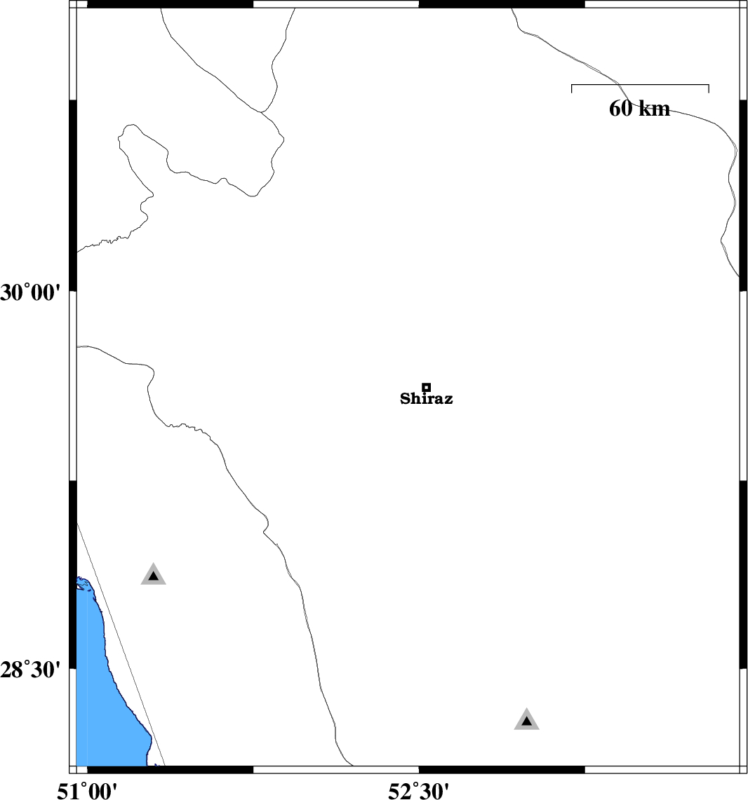 | 2009/12/21 | 22:06:09.2 | 01:36:09.2 | 29.61 | 52.45 | 15 | ML:3.1 | Fars Province, 8 km Shiraz |