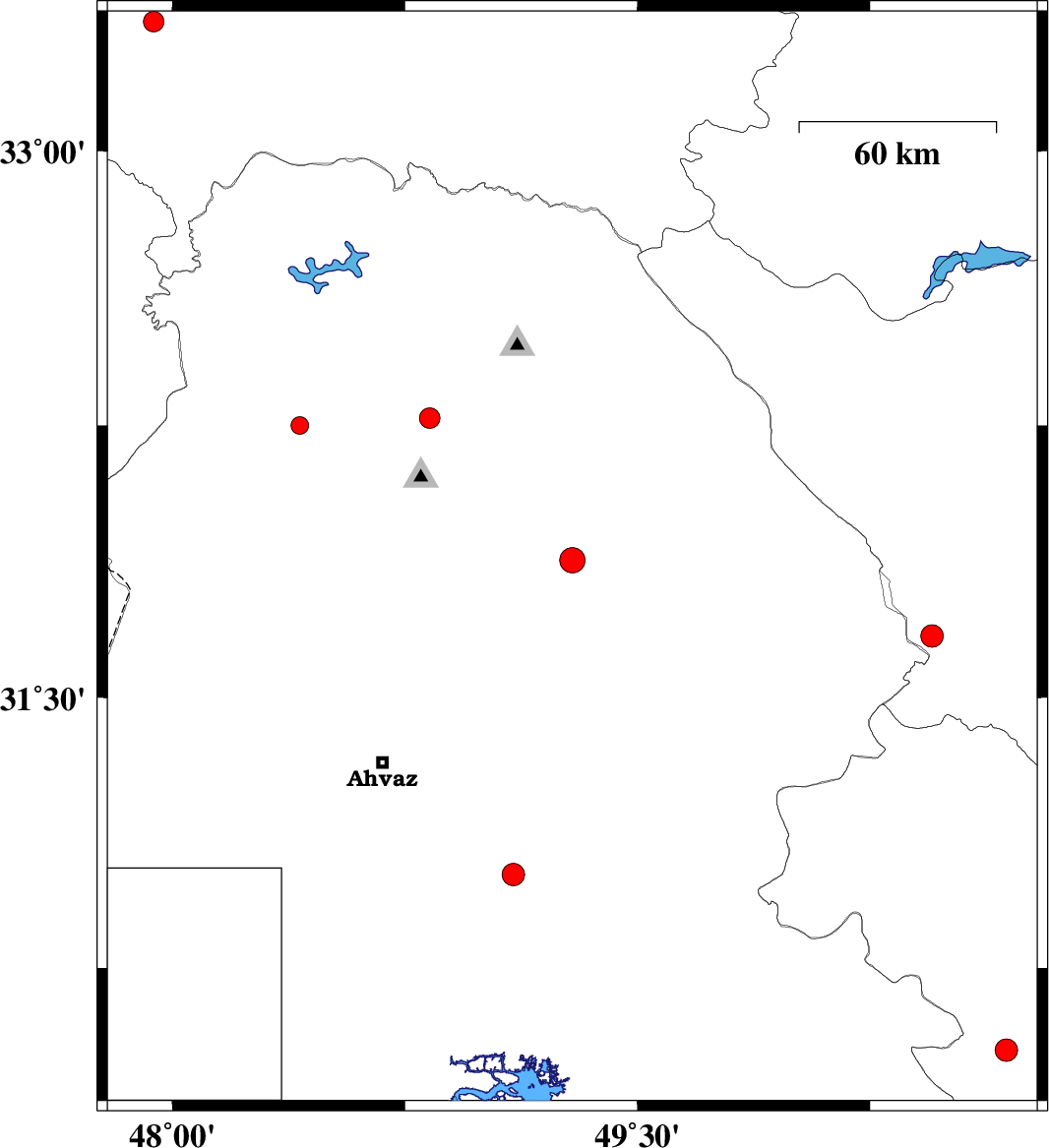 | 2009/12/04 | 06:02:18.8 | 09:32:18.8 | 33.35 | 47.94 | 32 | ML:3 | Lorestan Province, 30 km North-East of Pol-e dokhtar | ||