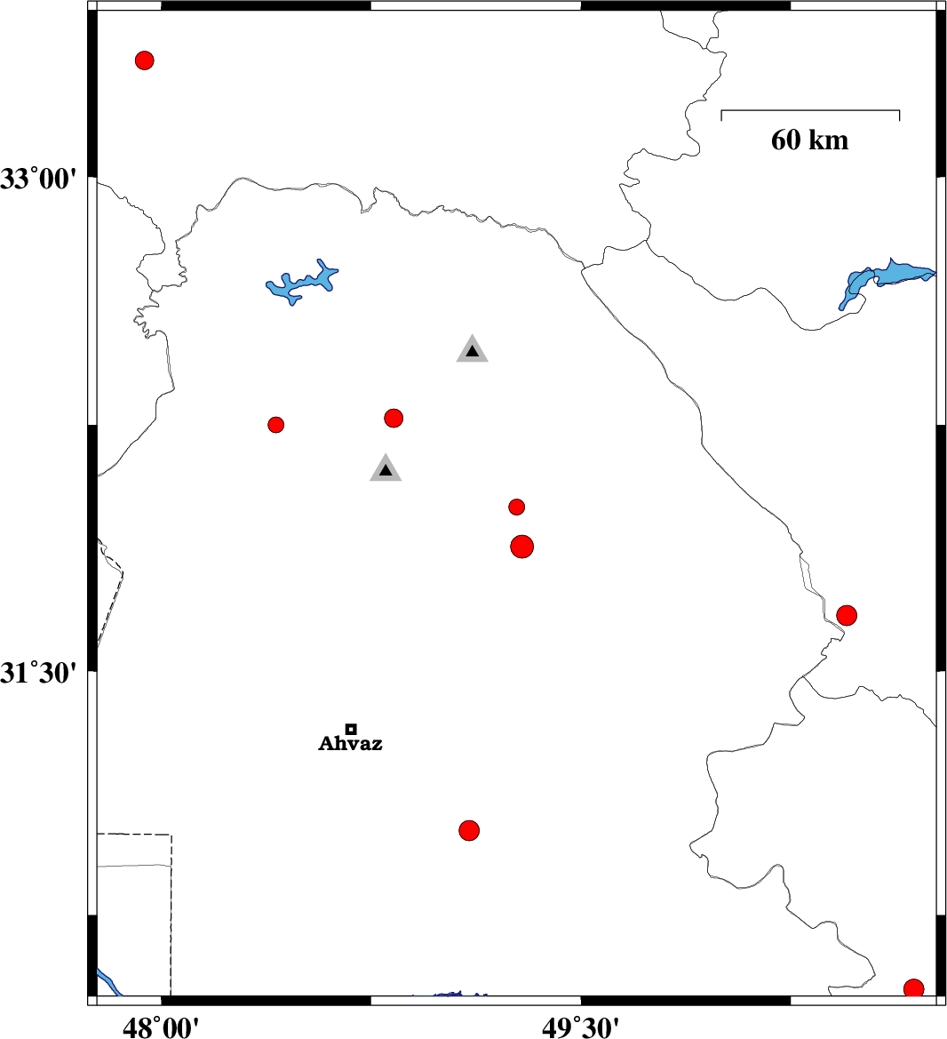 | 2009/12/04 | 06:02:18.8 | 09:32:18.8 | 33.35 | 47.94 | 32 | ML:3 | Lorestan Province, 30 km North-East of Pol-e dokhtar | ||