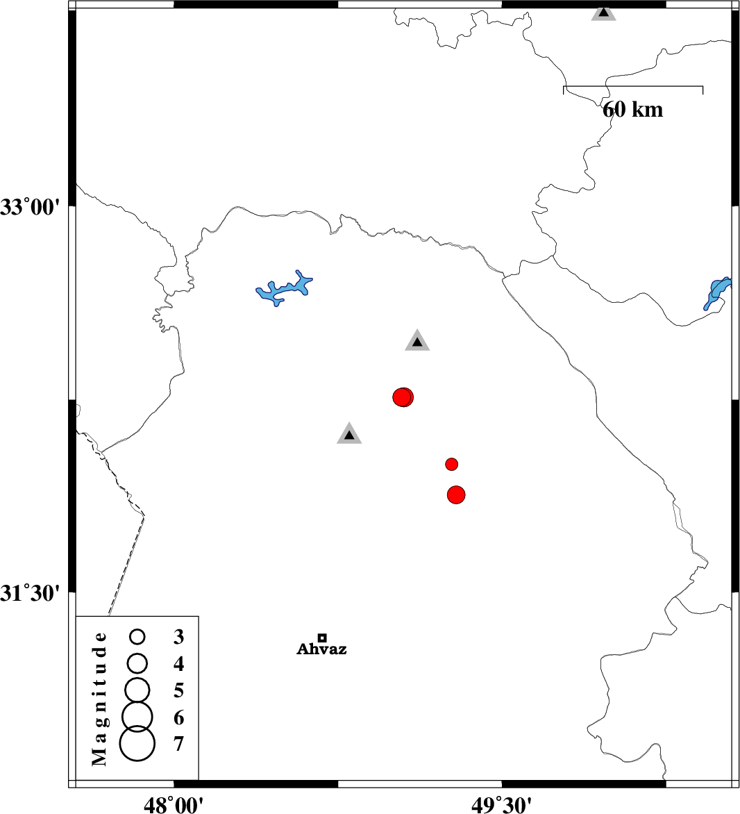 | 2009/12/22 | 16:55:02.5 | 20:25:02.5 | 32 | 49.27 | 14 | ML:2.6 | Khoozestan Province, 8 km Masjed Soleyman | ||