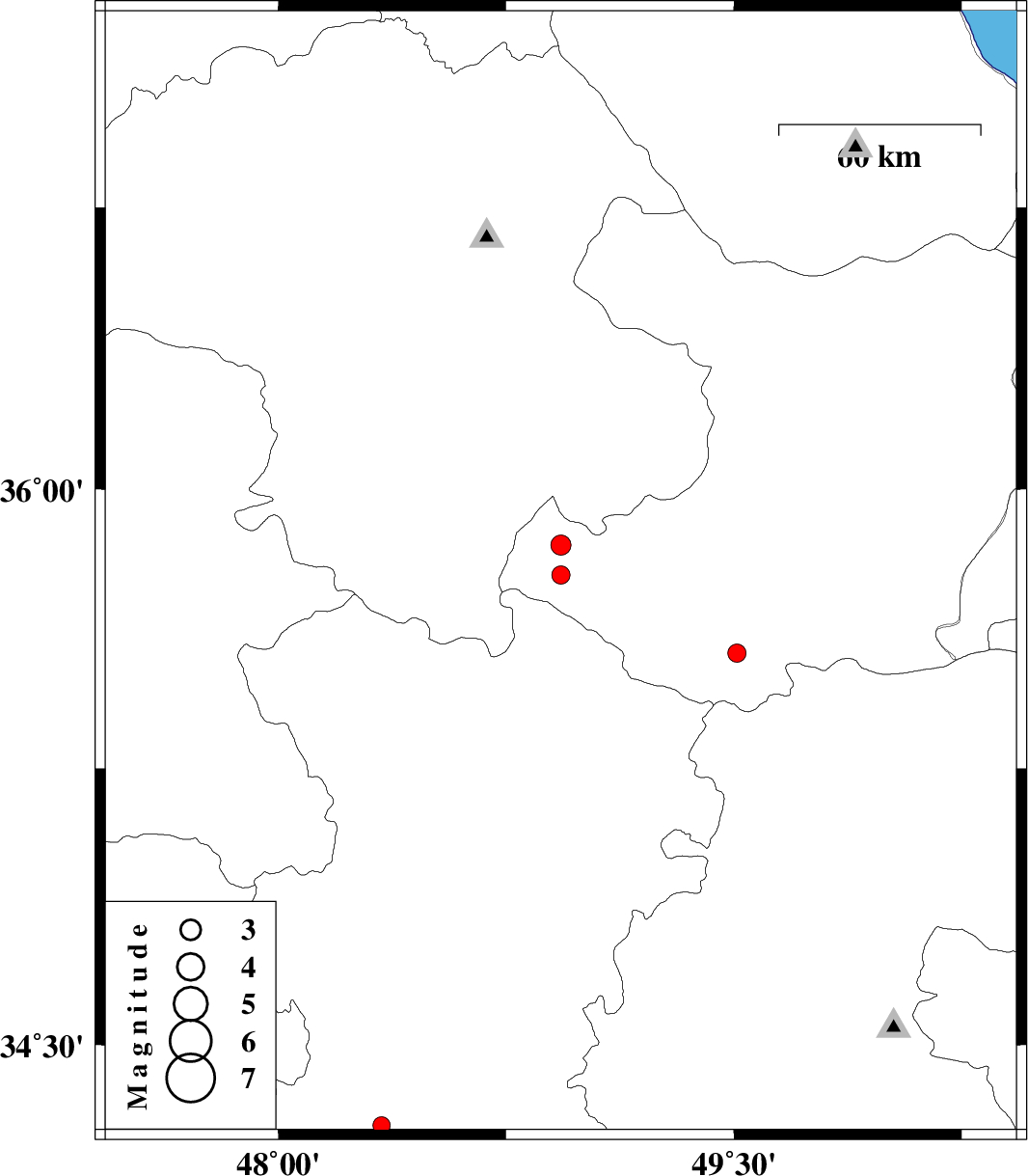 | 2009/12/05 | 04:23:44.9 | 07:53:44.9 | 35.56 | 49.51 | 14 | ML:2.7 | Ghazvin Province, 47 km North-East of Razan | ||