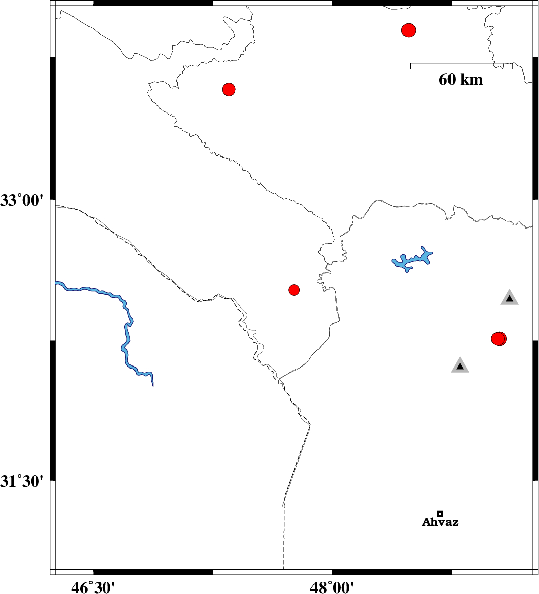 | 2009/12/26 | 15:18:58.4 | 18:48:58.4 | 32.52 | 47.76 | 15 | ML:3.1 | Ilam Province, 56 km West of Andimeshk | ||