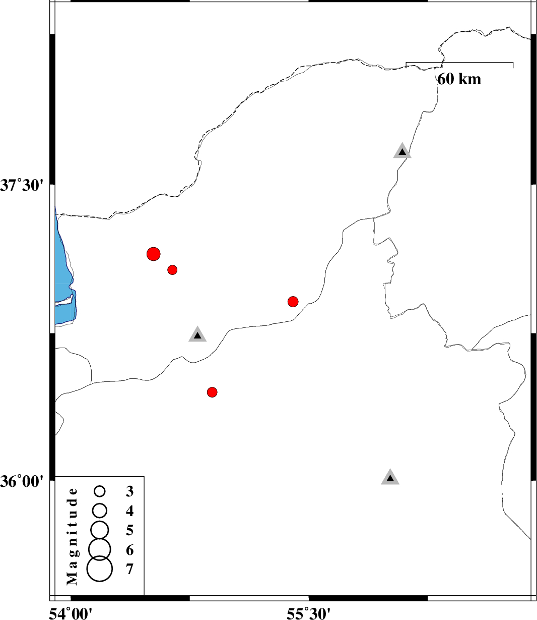 | 2009/12/03 | 20:32:58.4 | 00:02:58.4 | 37.07 | 54.64 | 14 | ML:2.7 | Golestan Province, 17 km East of Aq Qaleh | ||