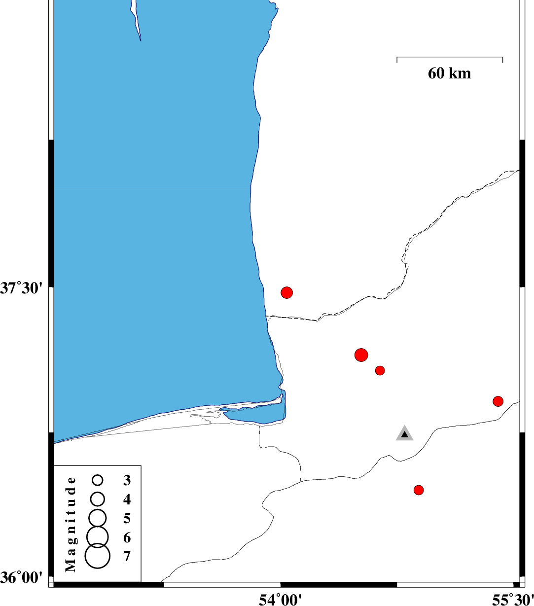 | 2009/12/03 | 20:32:58.4 | 00:02:58.4 | 37.07 | 54.64 | 14 | ML:2.7 | Golestan Province, 17 km East of Aq Qaleh | ||