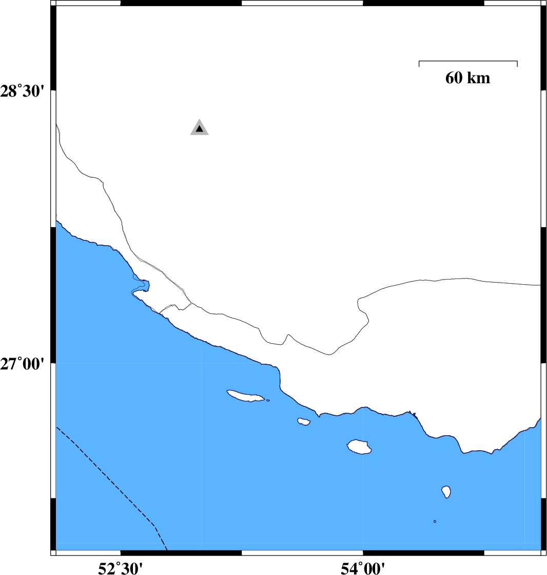 | 2010/04/01 | 07:31:59.8 | 12:01:59.8 | 27.46 | 53.6 | 40 | ML:3.9 | Fars Province, 45 km North-East of Lamerd | ||