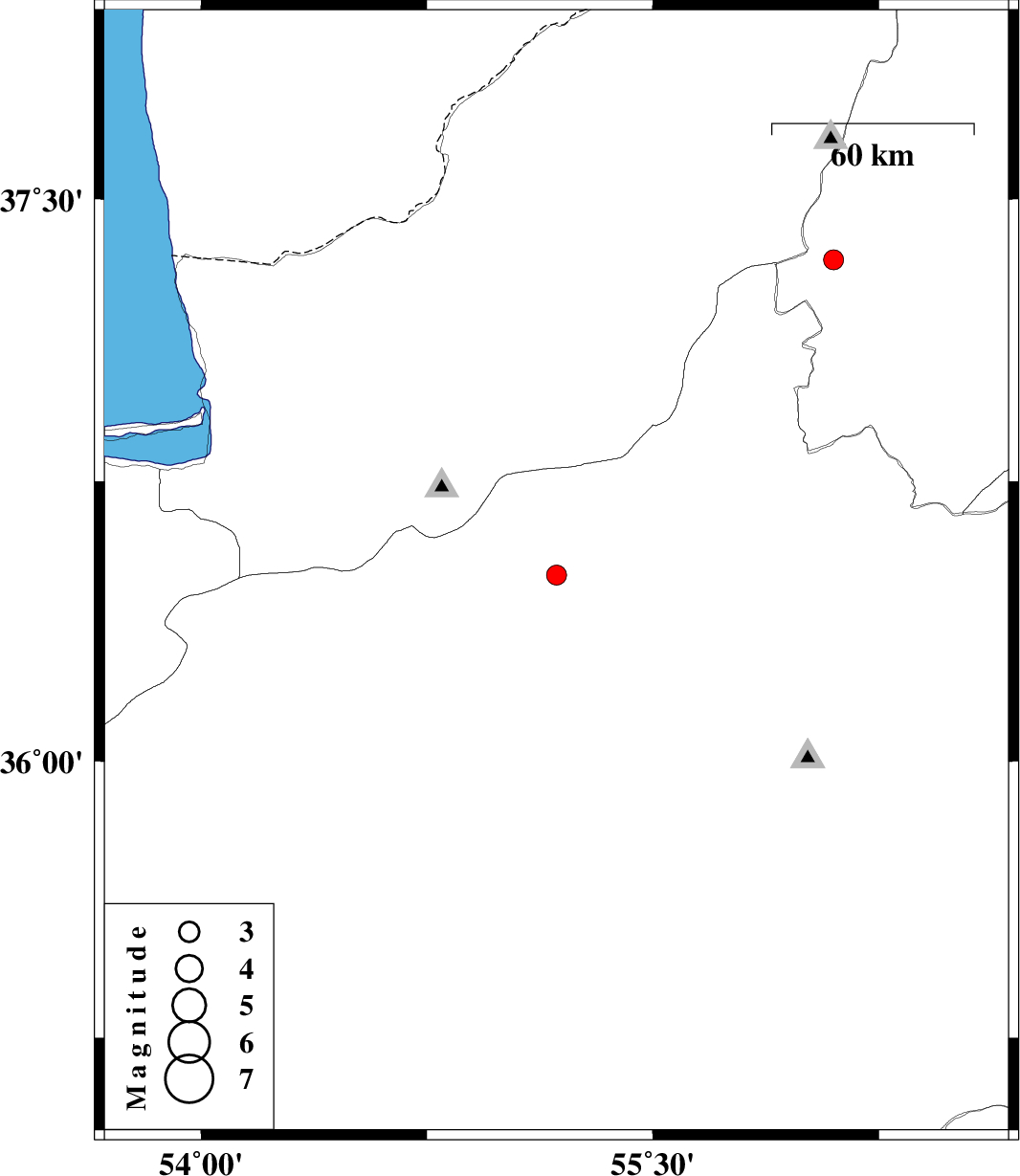 | 2010/04/04 | 02:21:48.5 | 06:51:48.5 | 36.5 | 55.18 | 17 | ML:2.9 | Semnan Province, 21 km East of Shahrud | ||