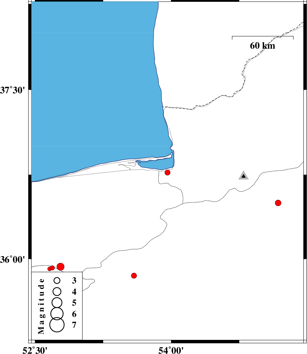 | 2010/04/04 | 02:21:48.5 | 06:51:48.5 | 36.5 | 55.18 | 17 | ML:2.9 | Semnan Province, 21 km East of Shahrud | ||