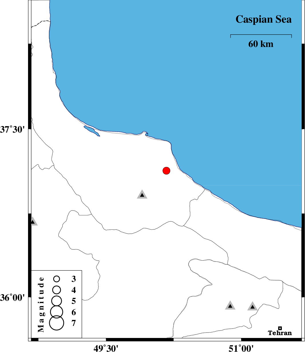 | 2010/04/08 | 09:25:12.4 | 13:55:12.4 | 37.13 | 50.17 | 17 | ML:3.7 | Gilan Province, 5 km Amlash | ||
