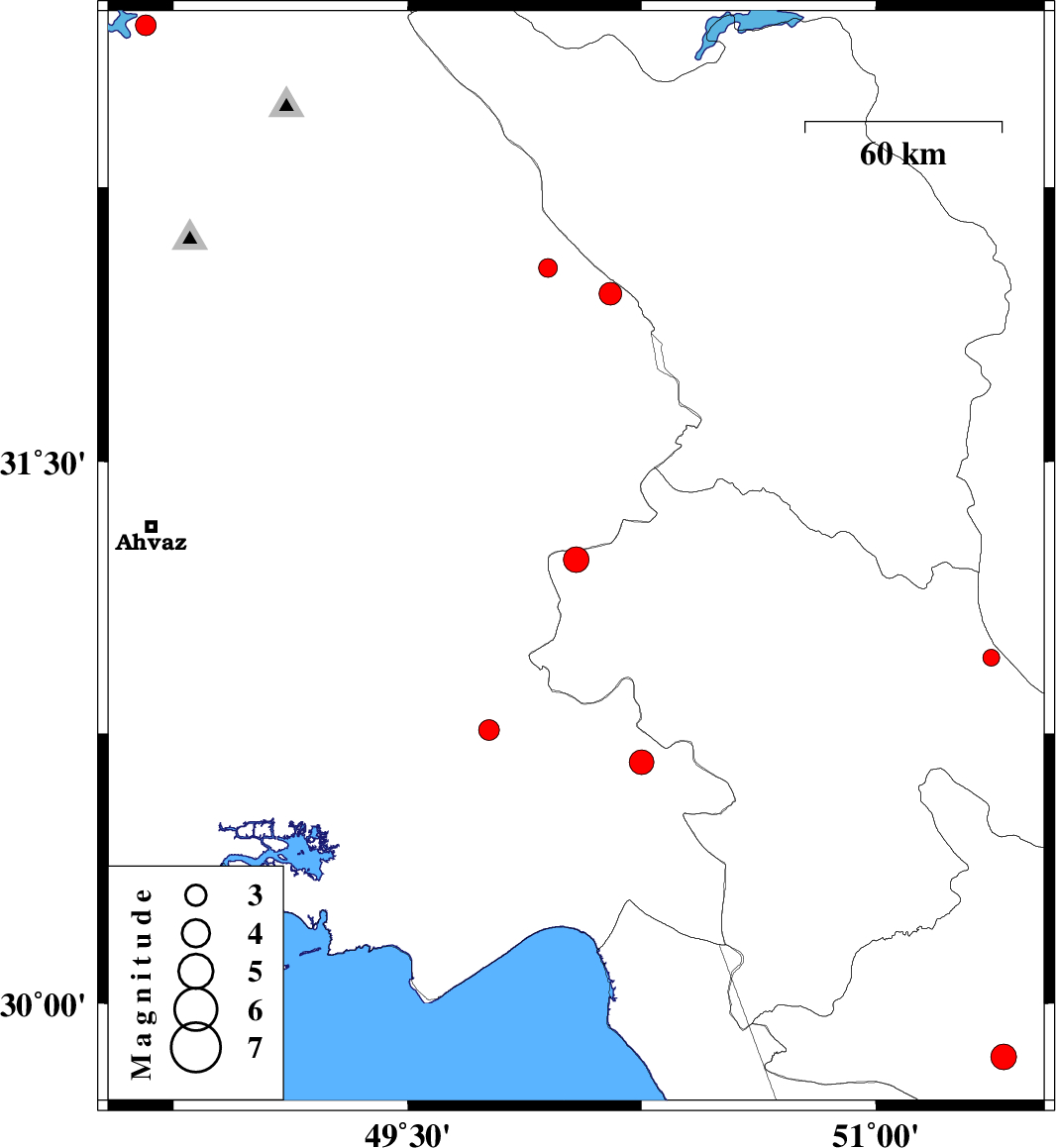 | 2010/03/11 | 18:31:07.7 | 22:01:07.7 | 30.76 | 49.76 | 45 | ML:3 | Khoozestan Province, 5 km Omidiyeh |
