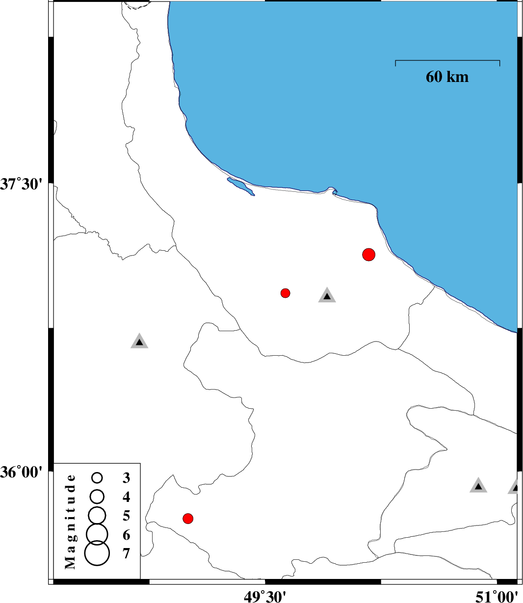 | 2010/04/08 | 09:25:12.4 | 13:55:12.4 | 37.13 | 50.17 | 17 | ML:3.7 | Gilan Province, 5 km Amlash | ||