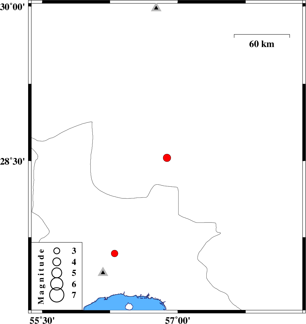 | 2010/04/10 | 21:26:03.0 | 01:56:03.0 | 27.59 | 56.3 | 14 | ML:3.4 | Hormozgan Province, 45 km North of Bandar-e abbas |